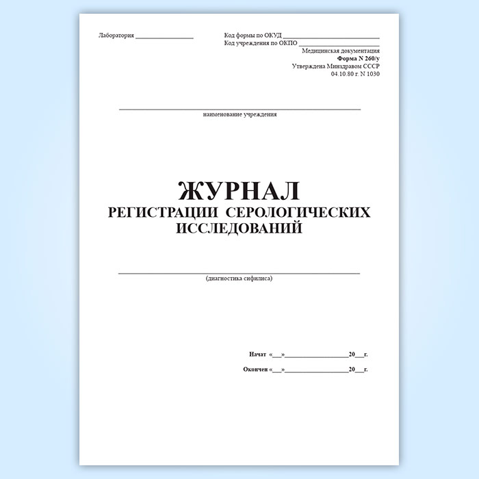 Журнал регистрации серологических исследований (диагностика сифилиса) (форма 260/у) в Щёлково купить