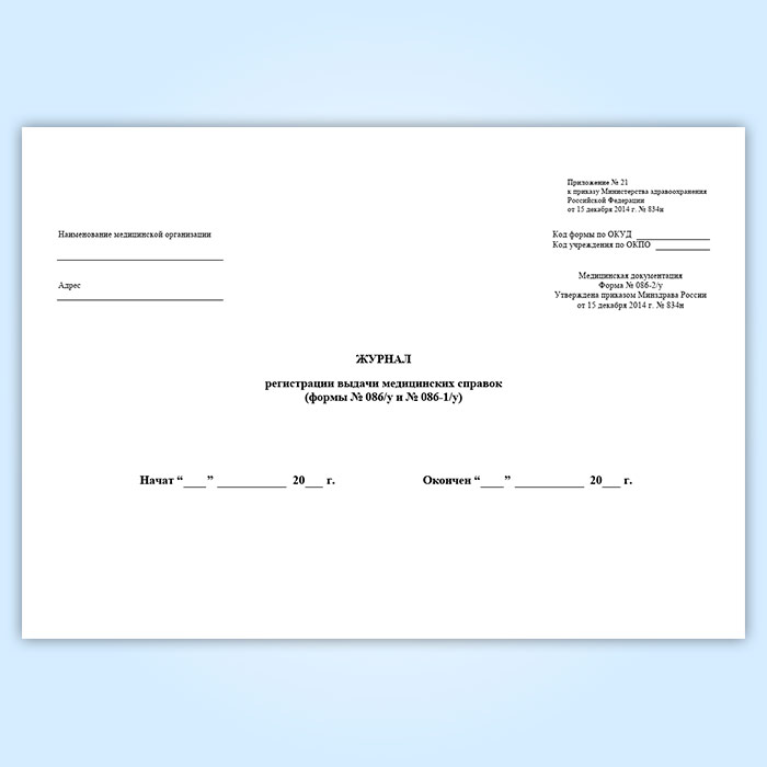 Журнал регистрации выдачи медицинских справок (форма № 086-2/у) в Щёлково купить