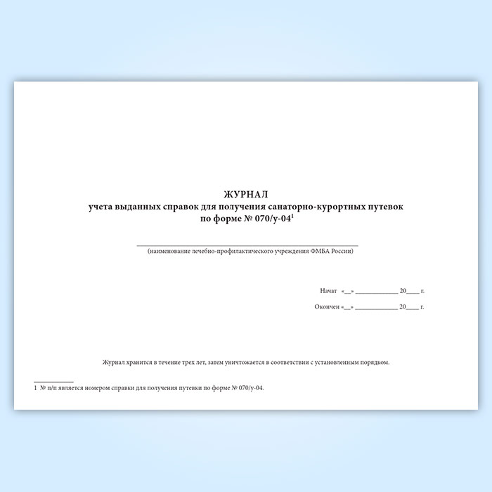 Журнал учета выданных справок для получения санаторно-курортных путевок (форма № 070/у-04) в Щёлково купить