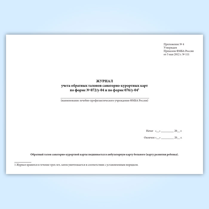 Журнал учета обратных талонов санаторно-курортных карт по форме (№ 072/у-04 и по форме 076/у-04 ) в Щёлково купить