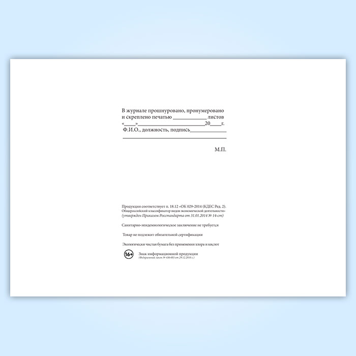 Вы получаете печатную продукцию прошнурованной и c местом для вашей печати в соответствии с действующими нормативными документами: