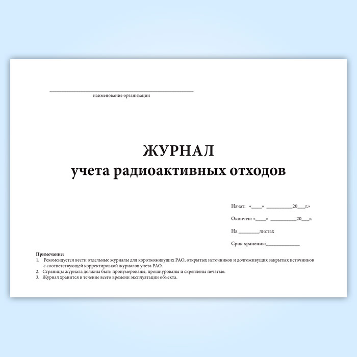 Журнал учета радиоактивных отходов (СанПиН 2.6.1.3288-15) в Щёлково купить