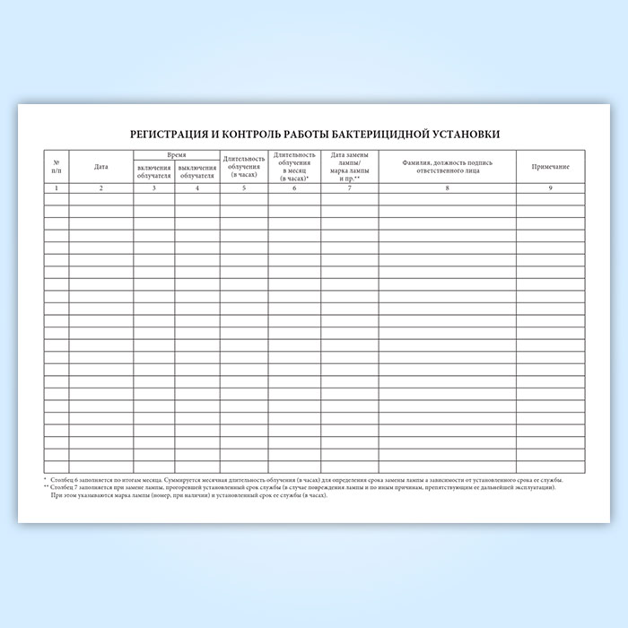 Журнал регистрации и контроля ультрафиолетовой бактерицидной установки (А4) в Щёлково купить