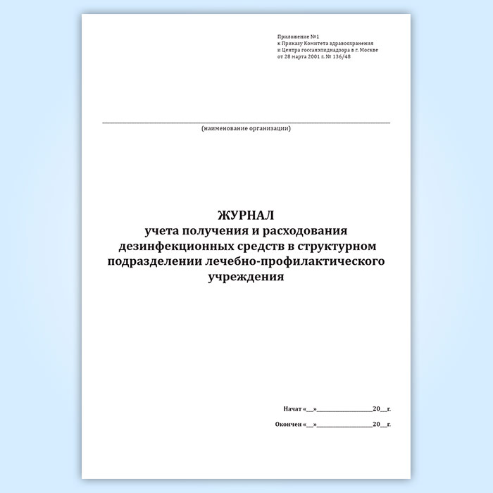 Журнал учета получения и расходования дезинфекционных средств в структурном подразделении лечебно-профилактического учреждения в Щёлково купить