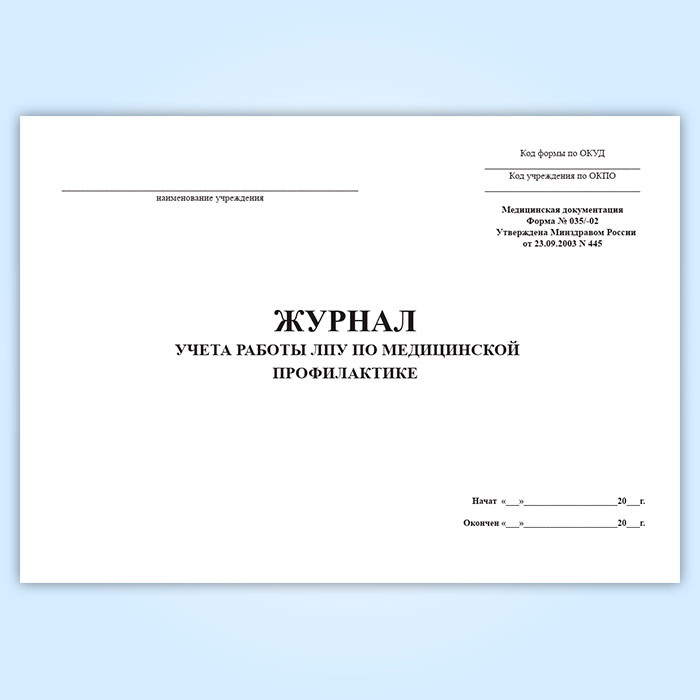 Журнал учета работы ЛПУ по медицинской профилактике (форма № 035/-02) в Щёлково купить