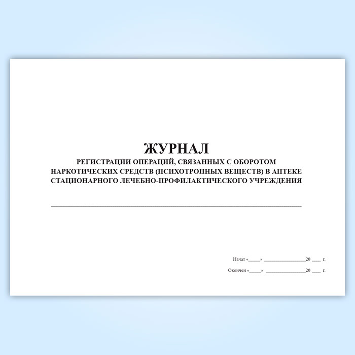 Журнал регистрации операций, связанных с оборотом наркотических средств и психотропных веществ в аптеке медицинской организации в Щёлково купить