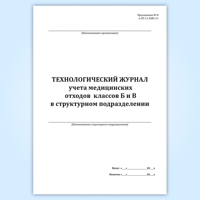 Технологический журнал учета медицинских отходов классов Б и В в структурном подразделении в Щёлково купить