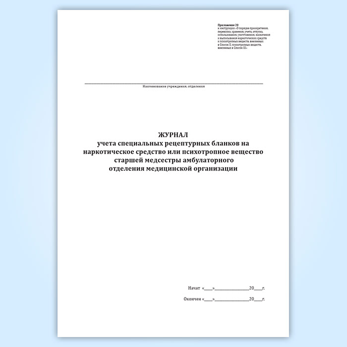 Журнал учета специальных рецептурных бланков на наркотическое средство или психотропное вещество старшей медсестры амбулаторного отделения медицинской организации в Щёлково купить