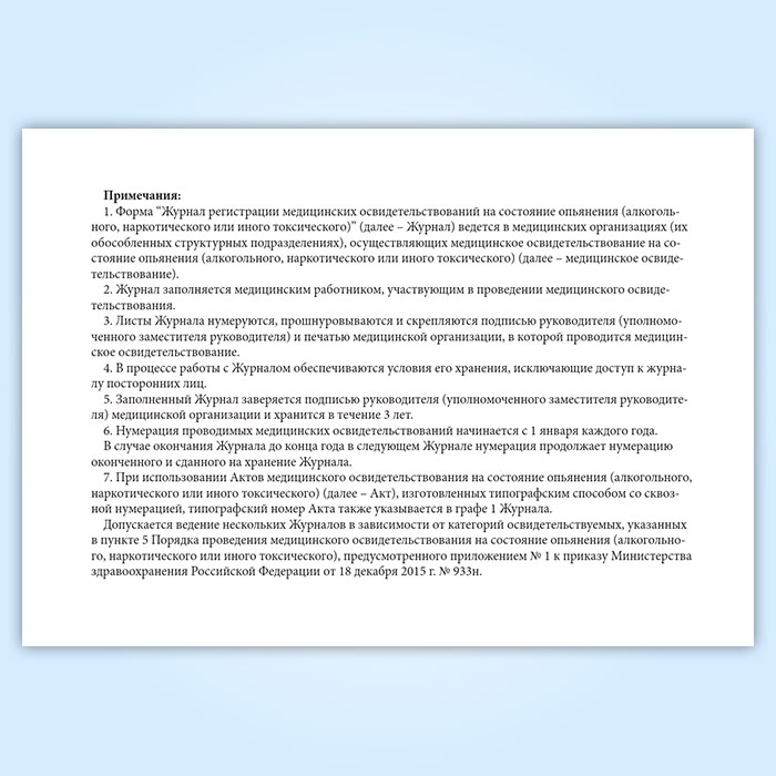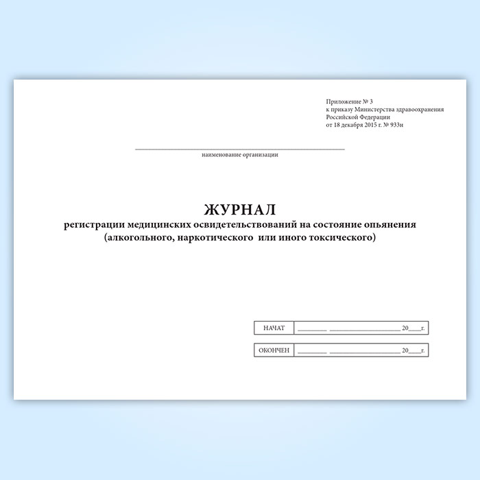 Журнал регистрации медицинских освидетельствований на состояние опьянения (алкогольного, наркотического или иного токсического) в Щёлково купить