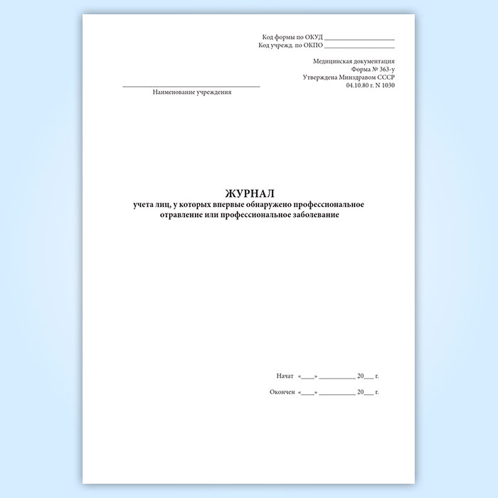 Журнал учета лиц, у которых впервые обнаружено профессиональное отравление или профессиональное заболевание (форма 363-у) в Щёлково купить