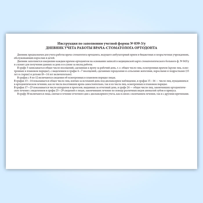 Дневник учета работы врача стоматолога-ортодонта (форма 039-3у) в Щёлково купить
