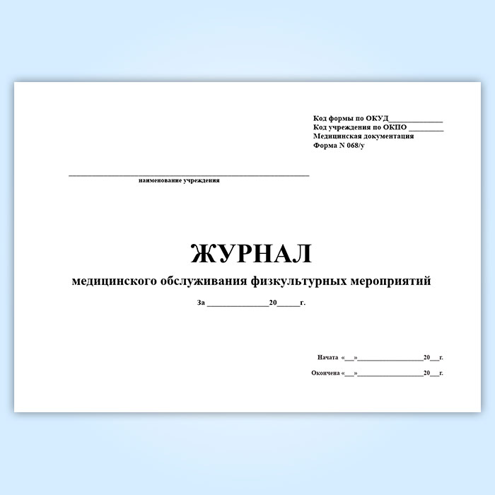 Журнал медицинского обслуживания физкультурных мероприятий (форма 068/у) в Щёлково купить