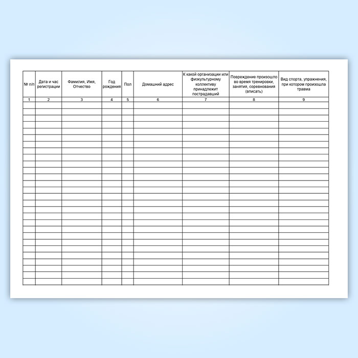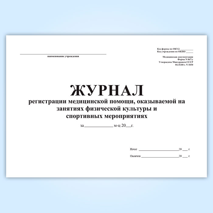 Журнал регистрации медицинской помощи, оказываемой на занятиях физической культуры и спортивных мероприятиях (форма 067/у) в Щёлково купить