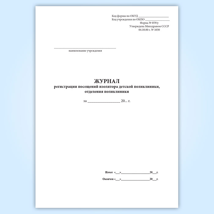 Журнал регистрации посещений изолятора детской поликлиники, отделения поликлиники (форма 059/У) в Щёлково купить