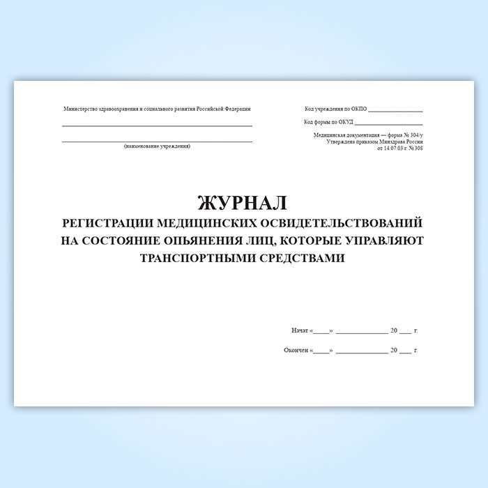 Журнал регистрации медицинских освидетельствований на состояние опьянения лиц, которые управляют транспортными средствами (форма 304/у) в Щёлково купить