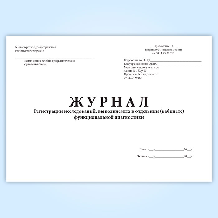 Журнал регистрации исследований, выполняемых в отделении (кабинете) функциональной диагностики (форма 157/у-93) в Щёлково купить