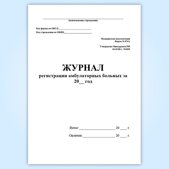 Журнал регистрации амбулаторных больных (форма 074/у) в Щёлково купить