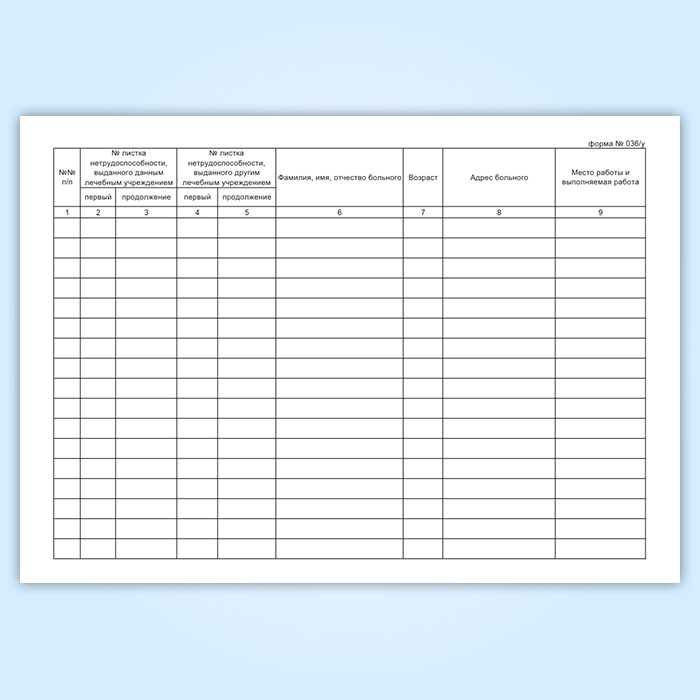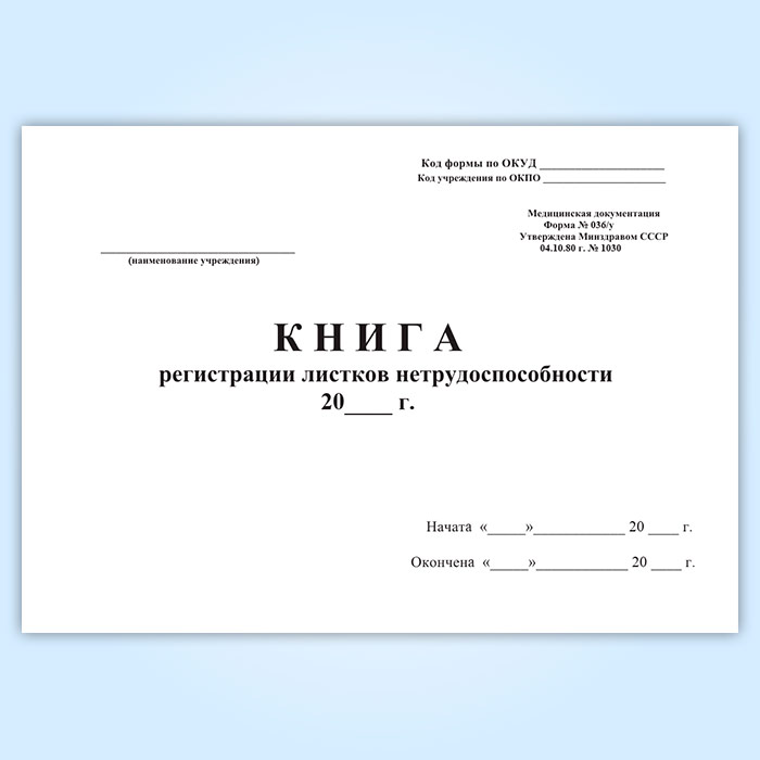 Книга регистрации листков нетрудоспособности (форма 036/у) в Щёлково купить
