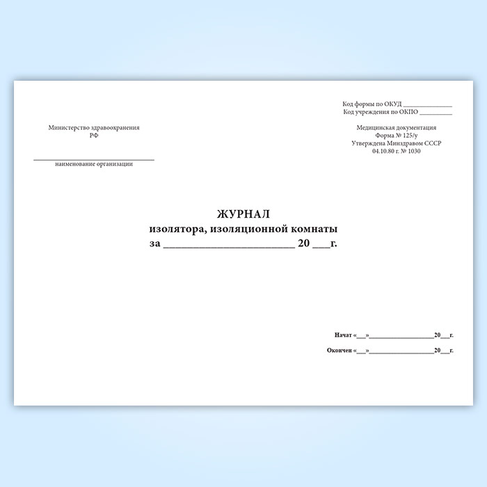 Журнал изолятора, изоляционной комнаты (форма 125/у) в Щёлково купить