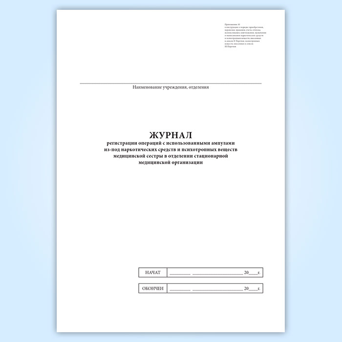 Журнал регистрации операций с использованными ампулами из-под наркотических средств и психотропных веществ медицинской сестры в отделении стационарной медицинской организации в Щёлково купить