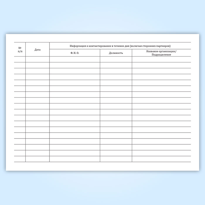 Журнал учета контактов сотрудника (в течение дня) в Щёлково купить
