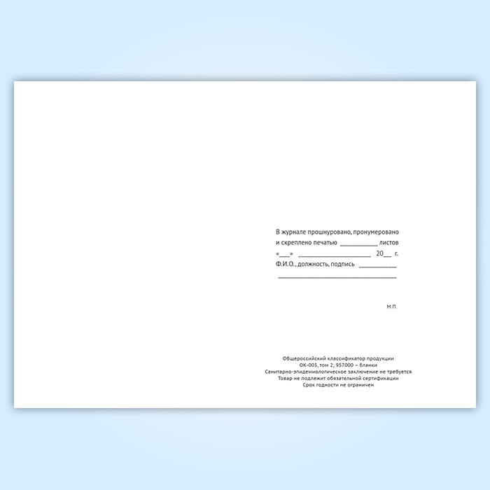 Вы получаете печатную продукцию прошнурованной и c местом для вашей печати в соответствии с действующими нормативными документами: