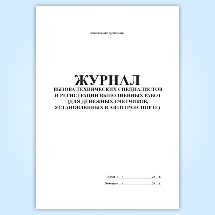 Журнал вызова технических специалистов и регистрации выполненных работ (для денежных счетчиков, установленных в автотранспорте) в Щёлково купить