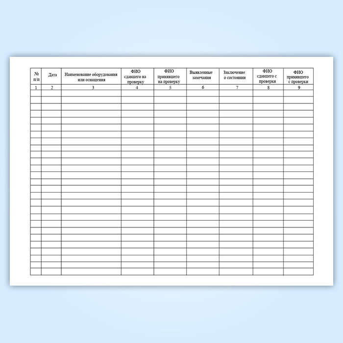 Журнал регистрации сдачи и выдачи оборудования и средств технического оснащения НАСФ на проверку в Щёлково купить