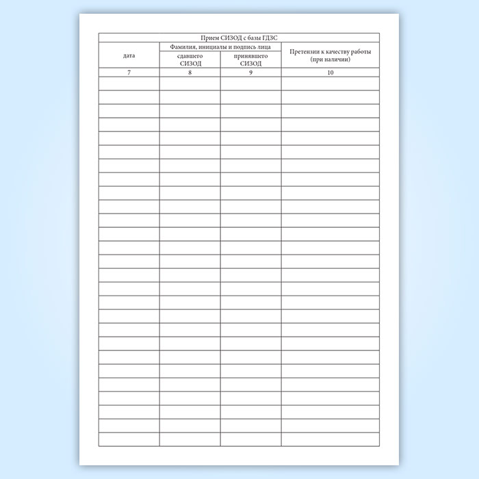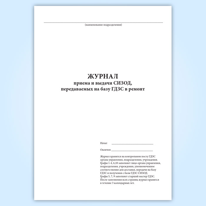Журнал приема и выдачи СИЗОД, передаваемых на базу ГДЗС в ремонт в Щёлково купить