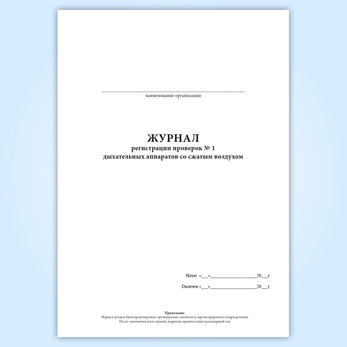 Журнал регистрации проверок N 1 дыхательных аппаратов со сжатым воздухом в Щёлково купить