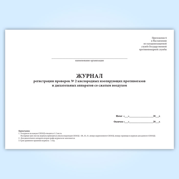 Журнал регистрации проверок № 2 кислородных изолирующих противогазов и дыхательных аппаратов на сжатом воздухе в Щёлково купить