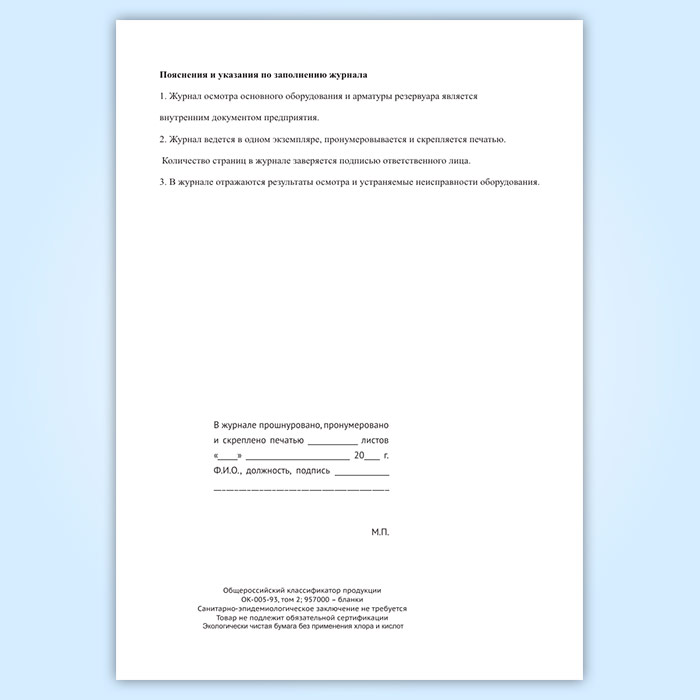 Журнал осмотра основного оборудования и арматуры резервуара (нефтепродукты) в Щёлково купить