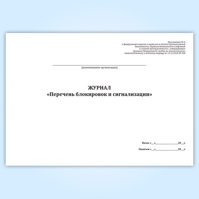 Журнал «Перечень блокировок и сигнализации» в Щёлково купить