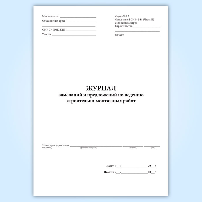 Журнал замечаний и предложений по ведению строительно-монтажных работ в Щёлково купить