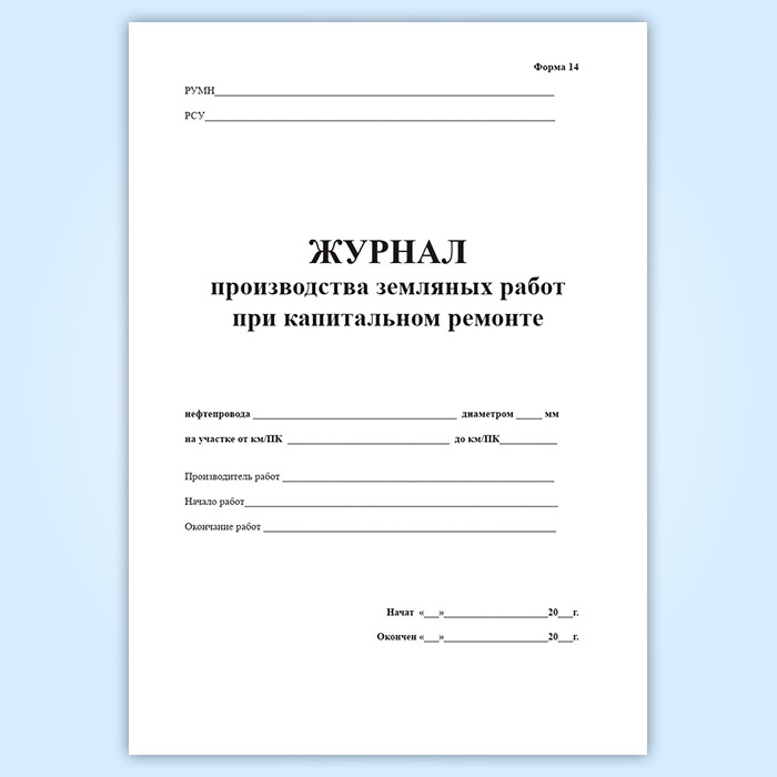 Журнал производства земляных работ при капитальном ремонте (форма 14) в Щёлково купить