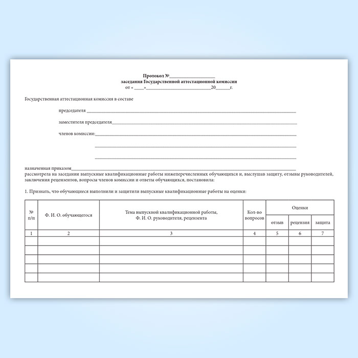 Книга протоколов заседаний Государственной аттестационной комиссии (горизонтальный) в Щёлково купить