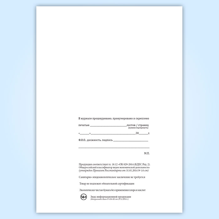 Вы получаете печатную продукцию прошнурованной и c местом для вашей печати в соответствии с действующими нормативными документами: