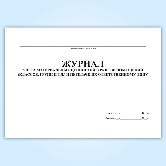 Журнал учета материальных ценностей в разрезе помещений (классов, групп и т.д.) и передачи их ответственному лицу в Щёлково купить