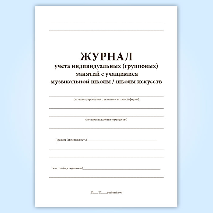 Журнал учета индивидуальных (групповых) занятий с учащимися музыкальной школы, школы искусств в Щёлково купить