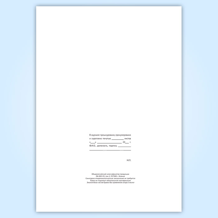 Вы получаете печатную продукцию прошнурованной и c местом для вашей печати в соответствии с действующими нормативными документами: