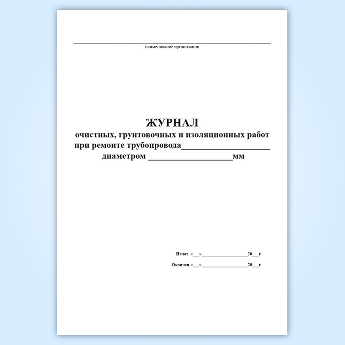 Журнал очистных, грунтовочных и изоляционных работ при ремонте трубопровода в Щёлково купить