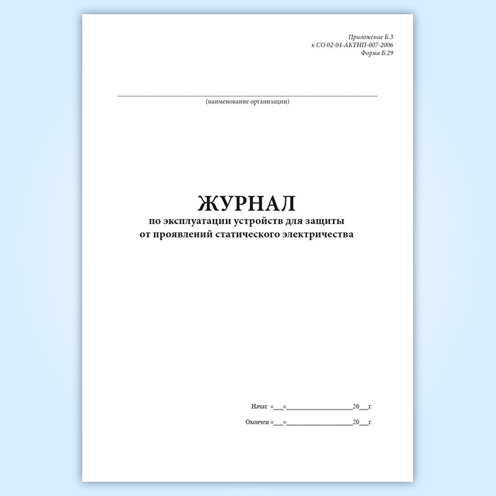 Журнал по эксплуатации устройств для защиты от проявлений статического электричества (форма Б.29) в Щёлково купить