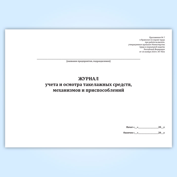 Журнал учета и осмотра такелажных средств, механизмов и приспособлений (Приказ Минтруда России от 16.11.2020 N 782н) в Щёлково купить