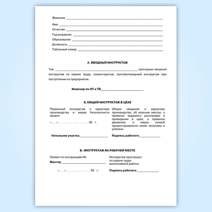Личная книжка инструктажа по охране труда в Щёлково купить