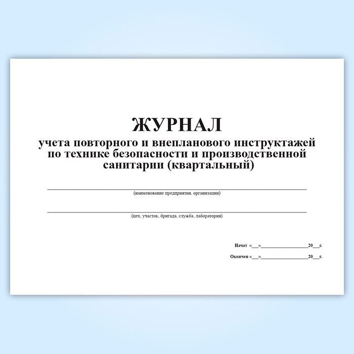 Журнал учета повторного и внепланового инструктажей по технике безопасности и производственной санитарии (квартальный) в Щёлково купить
