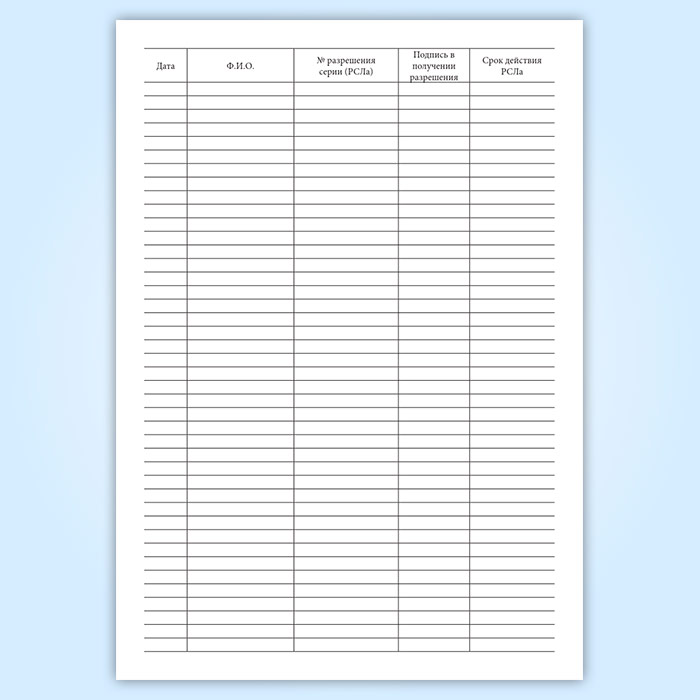 Журнал регистрации и выдачи поступающих разрешений на хранение и ношение огнестрельного оружия (РСЛа) в Щёлково купить