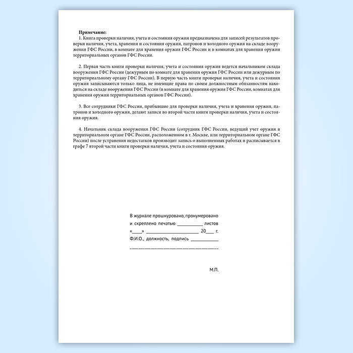 Книга проверки наличия, учета и состояния оружия (форма 20) в Щёлково купить