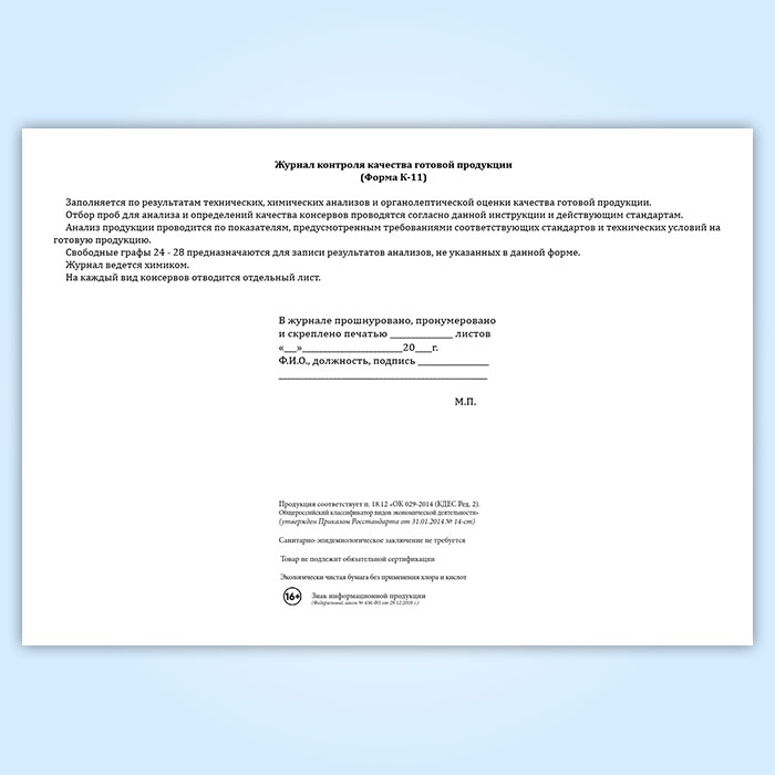 Журнал контроля качества готовой продукции (форма К-11) в Щёлково купить