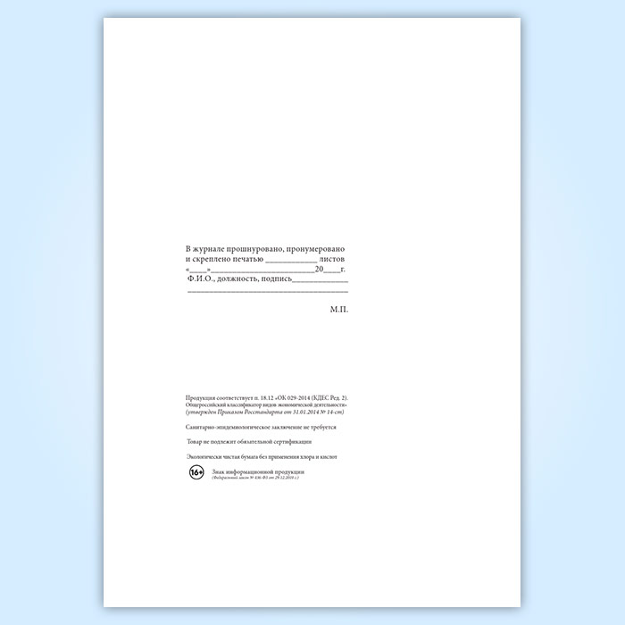 Вы получаете печатную продукцию прошнурованной и c местом для вашей печати в соответствии с действующими нормативными документами: