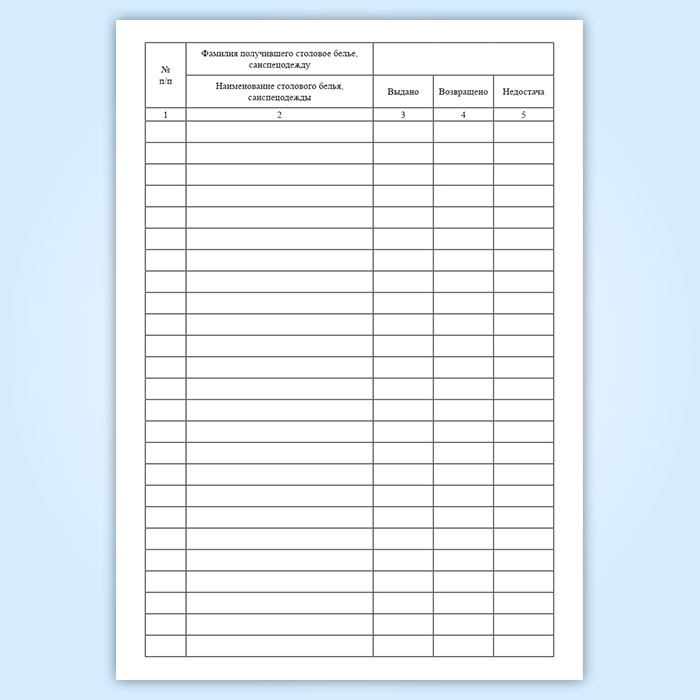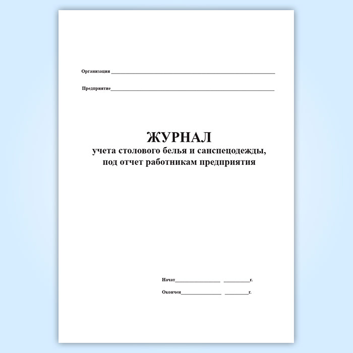Журнал учета столового белья и санспецодежды, выдаваемой под отчет работникам предприятия в Щёлково купить